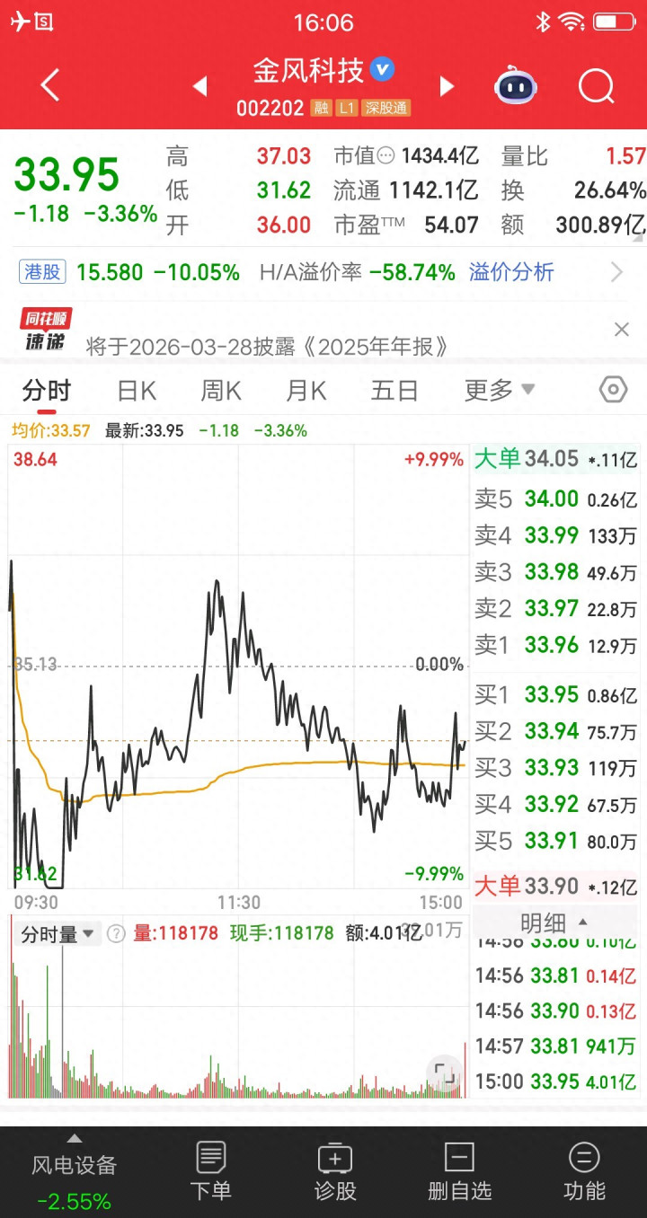 金风科技,我敢说很多人看到跌停的时候,想的是地天板。所以散户想在低位抄底,涨起来反而没人买了,于是地天板失败。
