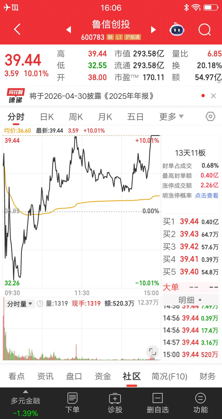 鲁信创投,六板的高度,对比那些十几个一字板的,向上还有空间,所以地天板才会成功。